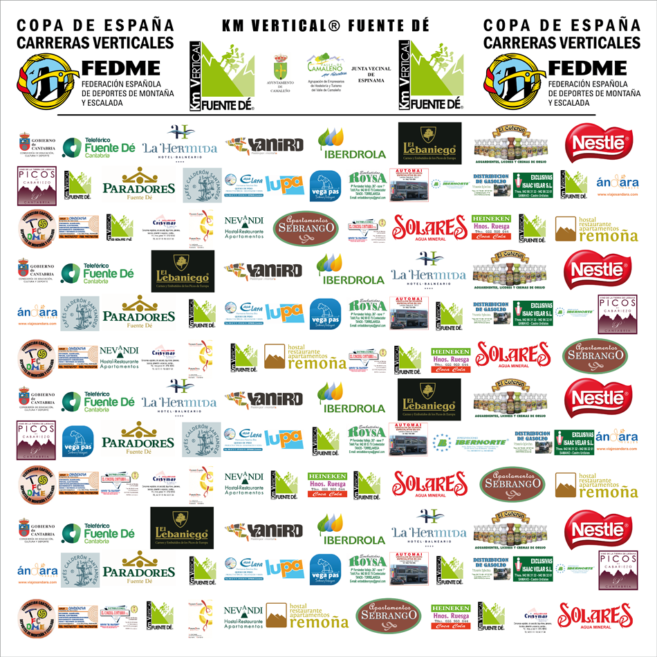 Como presidente de la ‘Agrupación de Empresarios de Hostelería y Turismo del Valle de Camaleño’ me complace dar las gracias a todos los patrocinadores, colaboradores y voluntarios que harán posible por cuarta vez el Km Vertical® Fuente Dé. En una época en que resulta demasiado habitual que competiciones más o menos arraigadas desaparezcan del calendario regional y nacional, para nosotros supone un gran orgullo recibir un año más el respaldo necesario para continuar vivos.