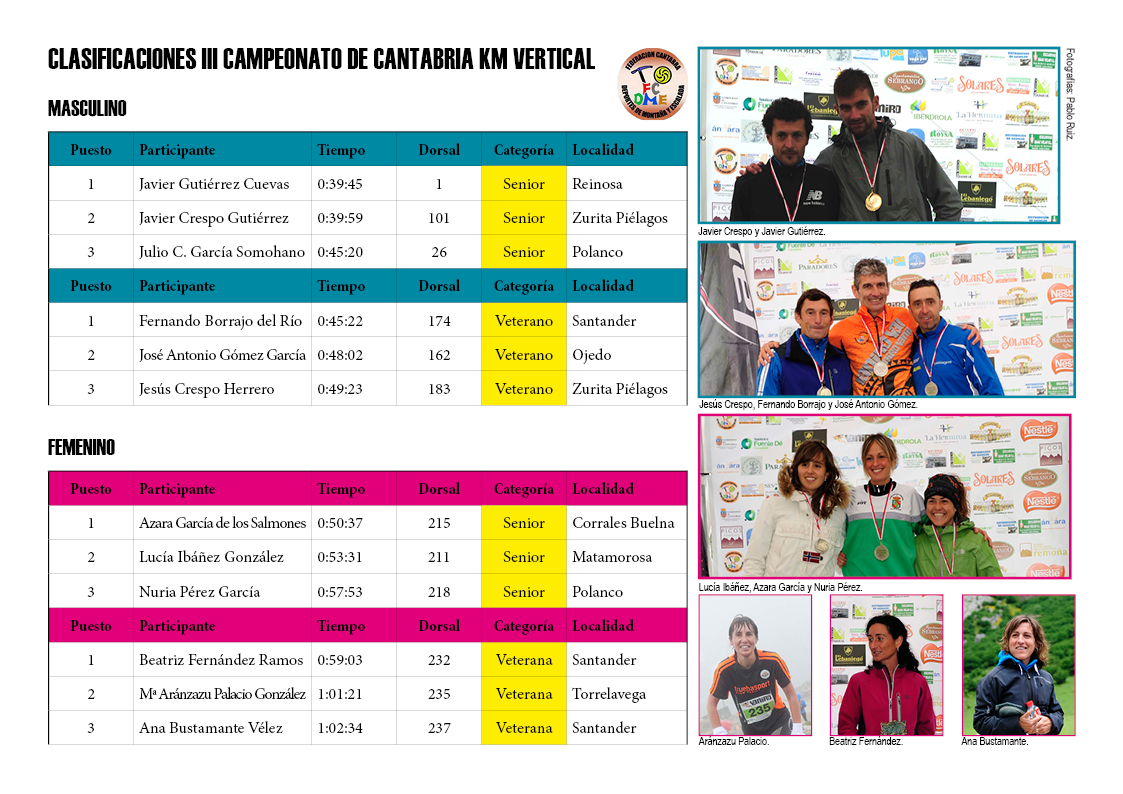 Clasificaciones IV Km Vertical® Fuente Dé Clasificaciones IV Km Vertical® Fuente Dé FEMENINOClasificaciones Copa España Carreras Verticales 2013 IV Km Vertical® Fuente Dé Clasificaciones Copa España Carreras Verticales 2013 IV Km Vertical® Fuente Dé femeninoClasificaciones III Campeonato Cantabria Km Vertical FCDMEClasificación absoluta IV Km Vertical® Fuente Dé